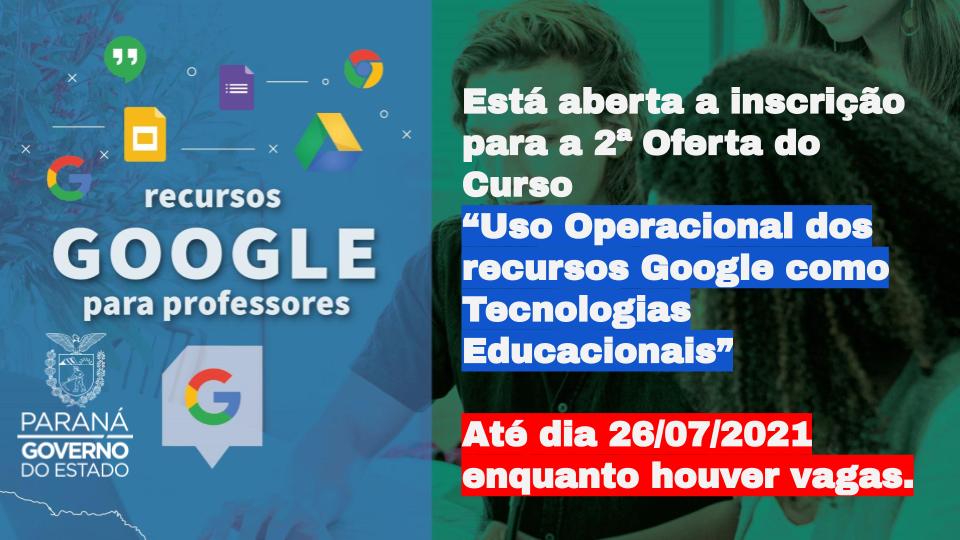 Pré-inscrição para o curso Uso Operacional Ferramentas Google como tecnologias educacionais - 2ª oferta 19/07/2021 - 16:00